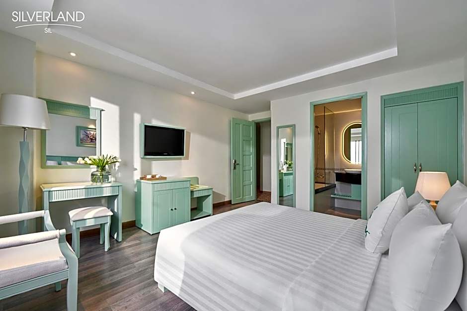 Offering additional space, the suite comes with a small living room and a bathroom with a bathtub.